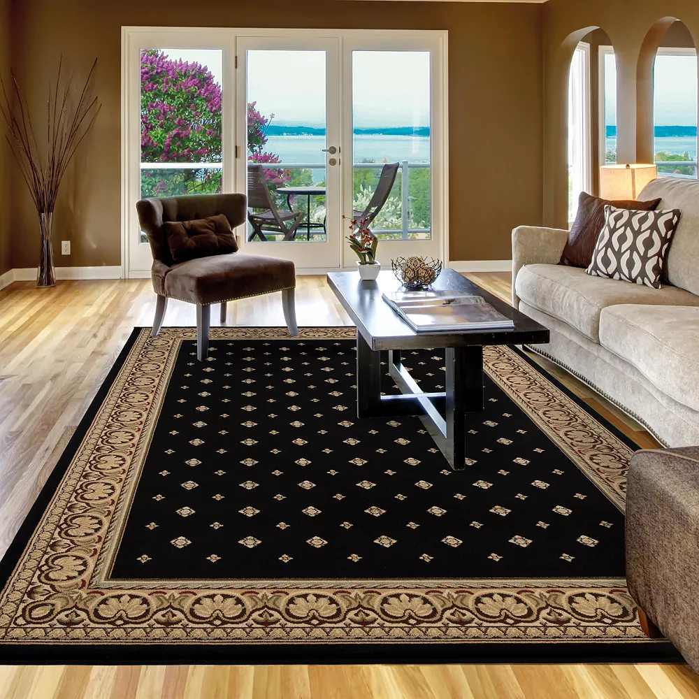 Spruce up your home’s style with this timeless Merinos Pin Dot framed rug.
