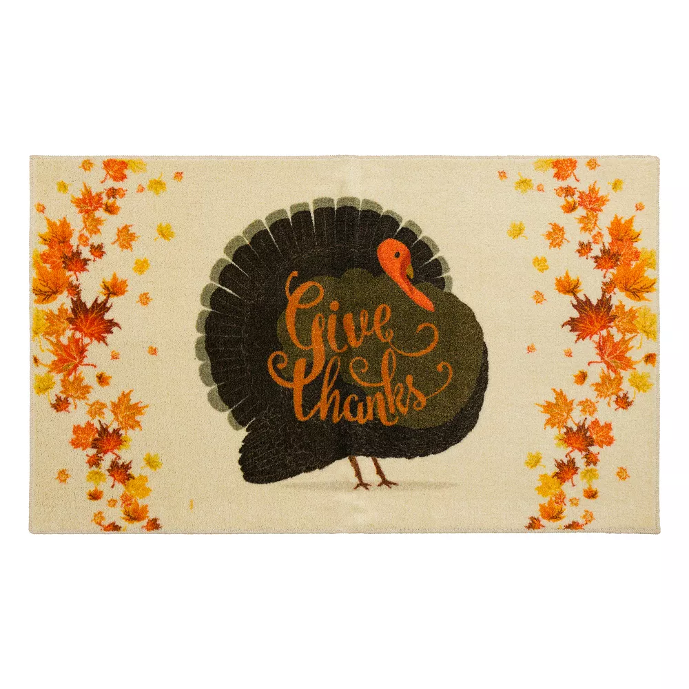 Experience the excellence of recycled EverStrand construction in this stylish and seasonal Mohawk Home Give Thanks Turkey rug.