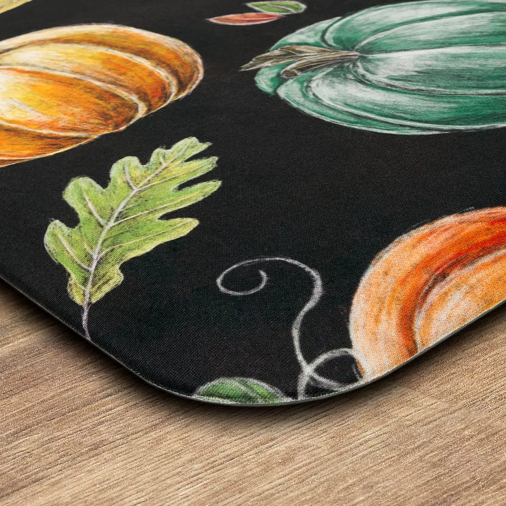 Fashion and function meet in this versatile and inviting Mohawk® Home Harvest Chalk Pumpkin Multi 18” x 30” Doormat.