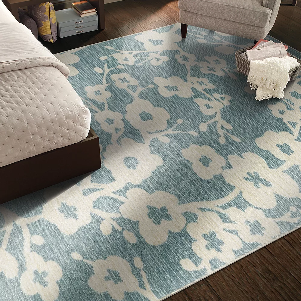 This Mohawk Home Naples Burbank Blossom Floral rug gives your floor fresh appeal. In blue.