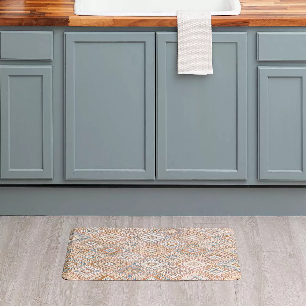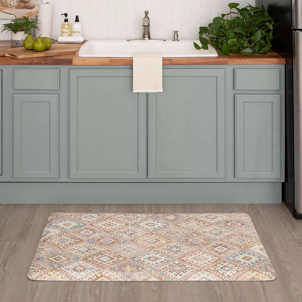 Fashion, function, and form meet in this comfortable Mohawk® Home Nomadic Sunset Comfort Kitchen Mat.