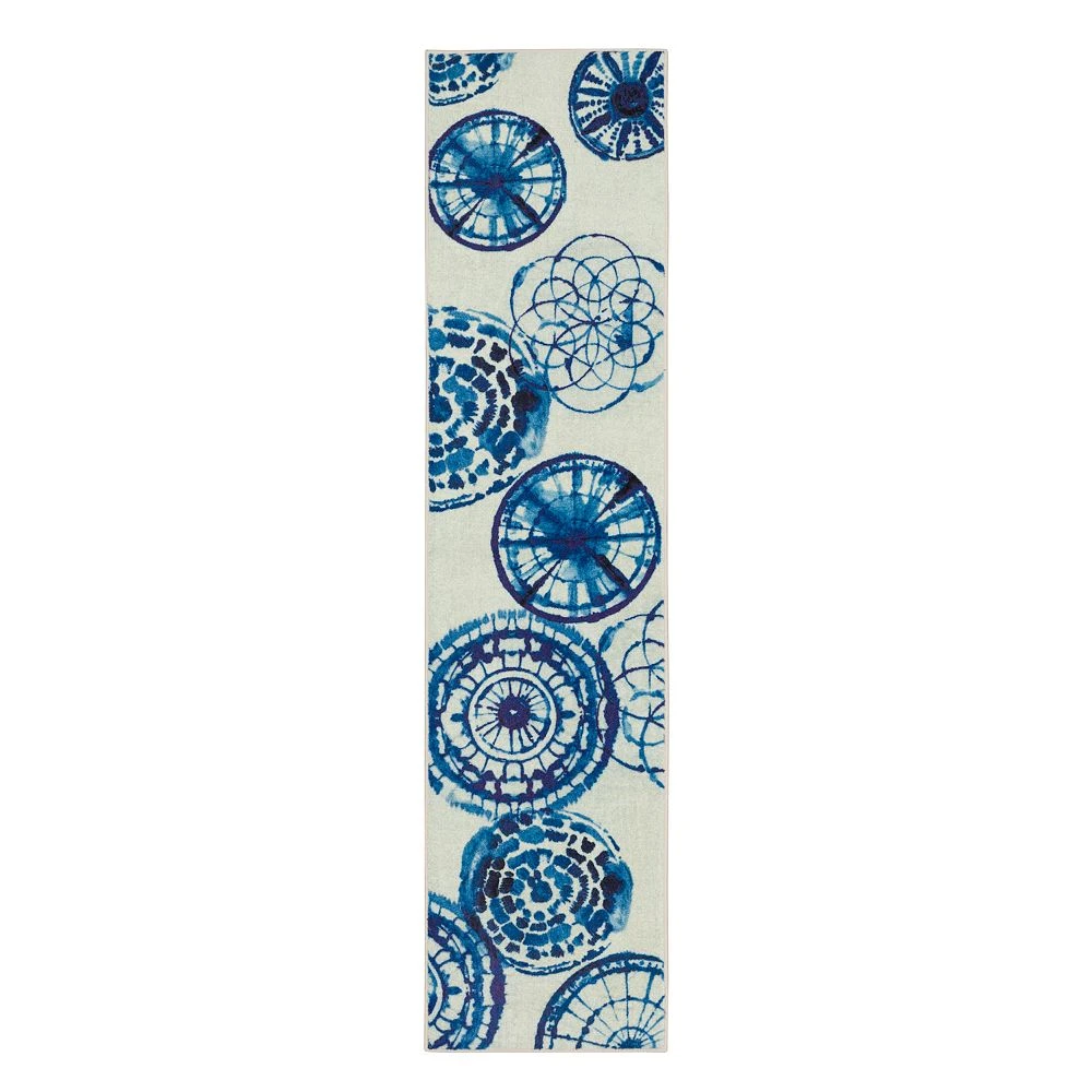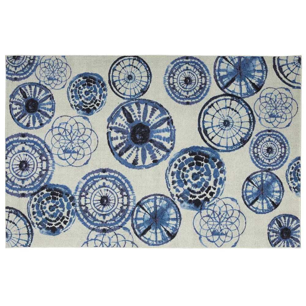 Get the look and durability you’ve been searching for with this Mohawk Home Prismatic Bohemian Circles EverStrand rug. In navy.