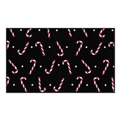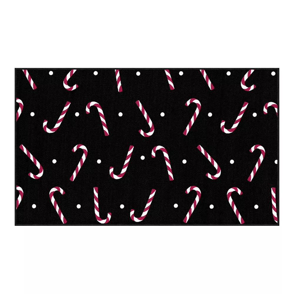 Candy canes form the festive pattern on this modern rectangular rug dance on a sea of neutral black. Subtle pops of red infuse living rooms and dining rooms with subtle cheer and warmth. Designed with polyester, this rug features precision dye injected construction with cut pile details.
