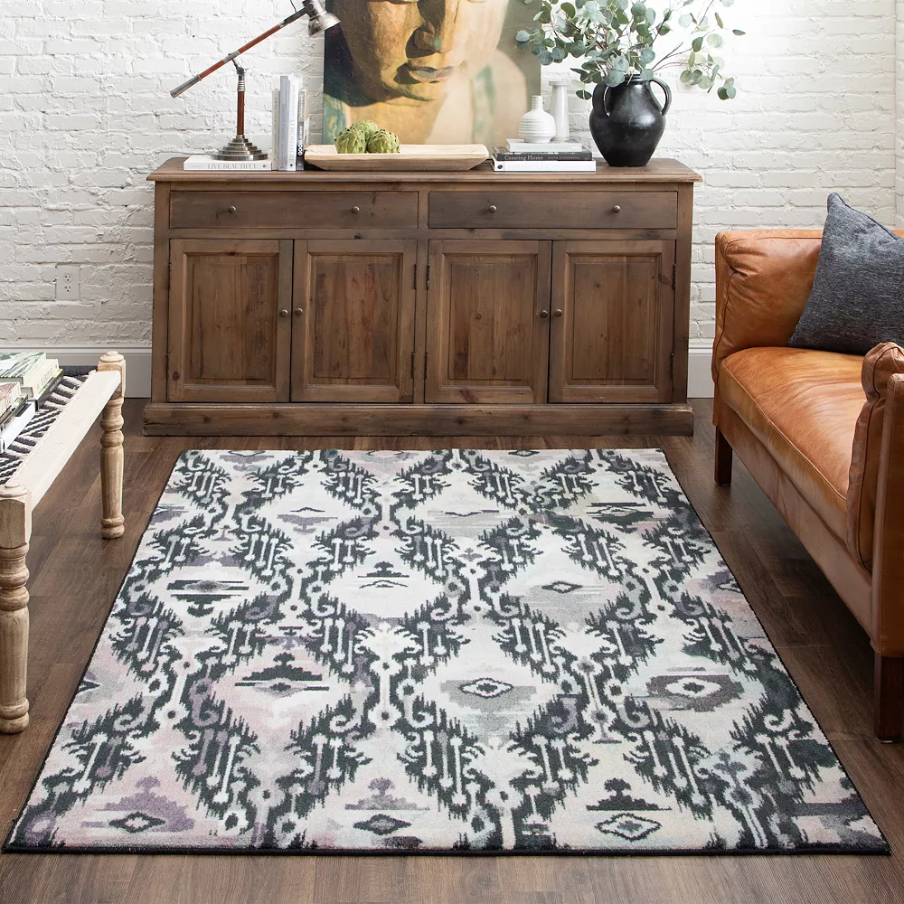 Bring plush perfection to your home with the durable Mohawk Home Prismatic EverStrand Hip Ikat rug.