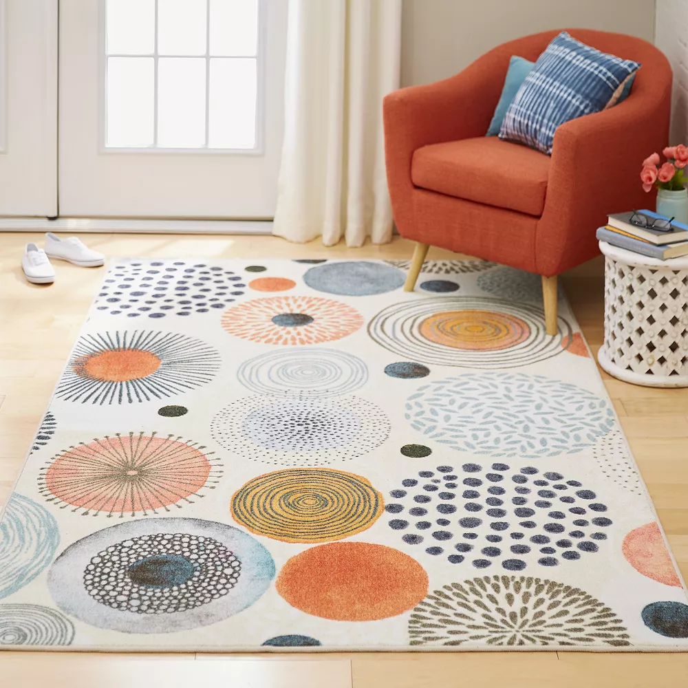 Bring plush perfection to your home with the durable Mohawk Home Prismatic EverStrand Textured Circles rug.