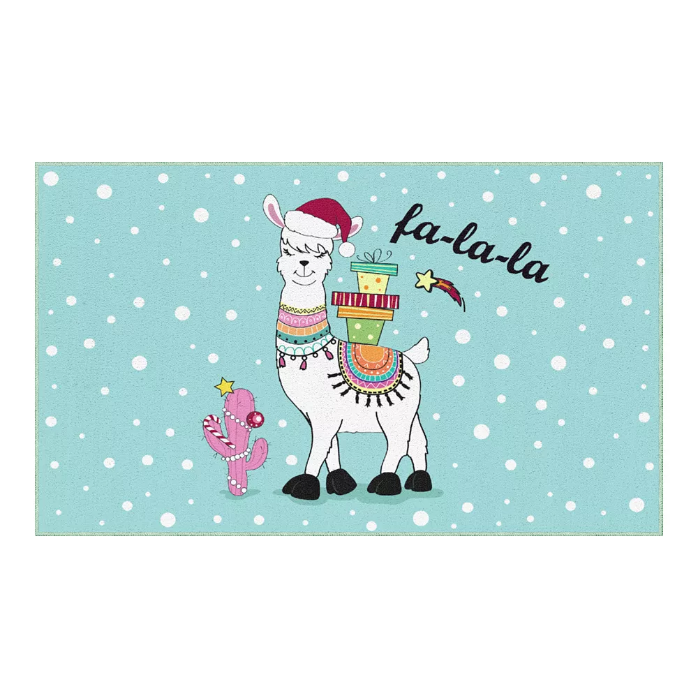 Sing along to your favorite Christmas carols with the youthful imagery and multi-colored shades from this rectangular polyester rug. Brightly designed, a cactus tree and cheerful llama encourage a joyous mood. Dress up your living room with playful, modern style.
