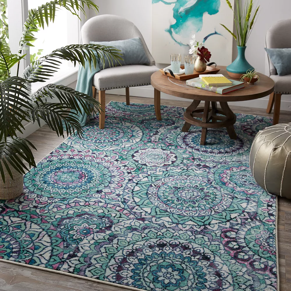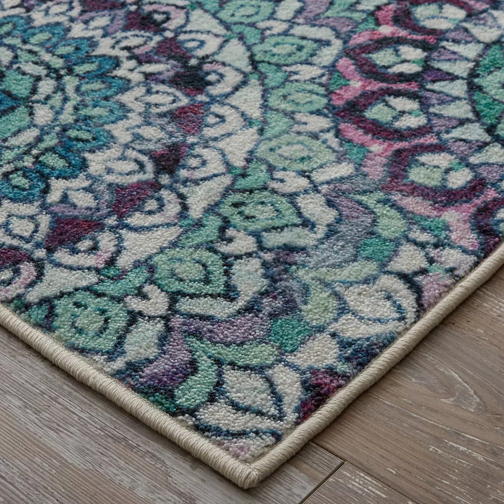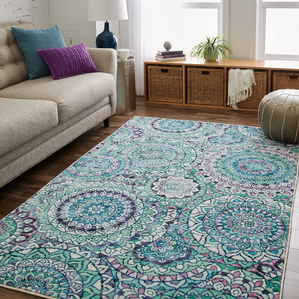 - Vibrant colors and intricate details collide in the contemporary design of Mohawk’s Florence Medallion Area Rug