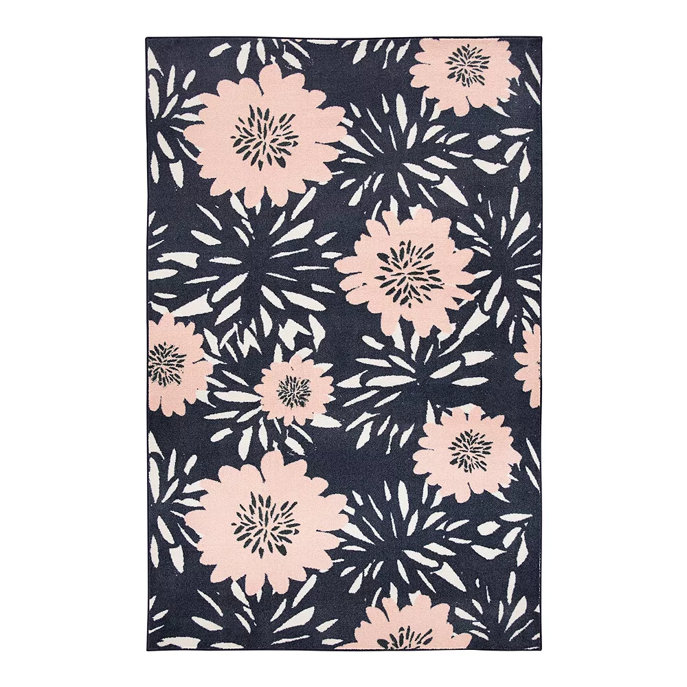 - This beautiful cut-pile rug bursts with a sophisticated floral pattern against a refined navy background