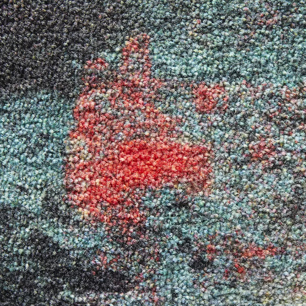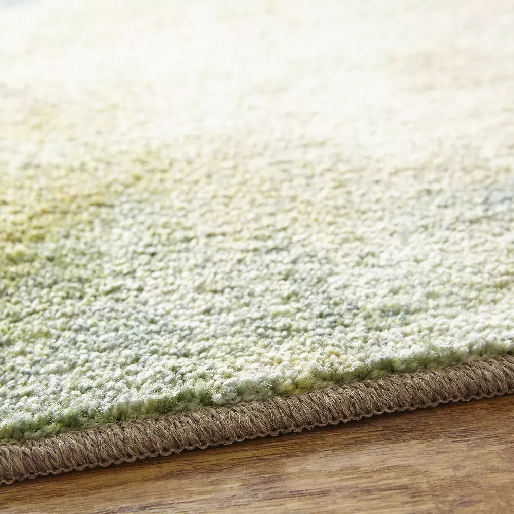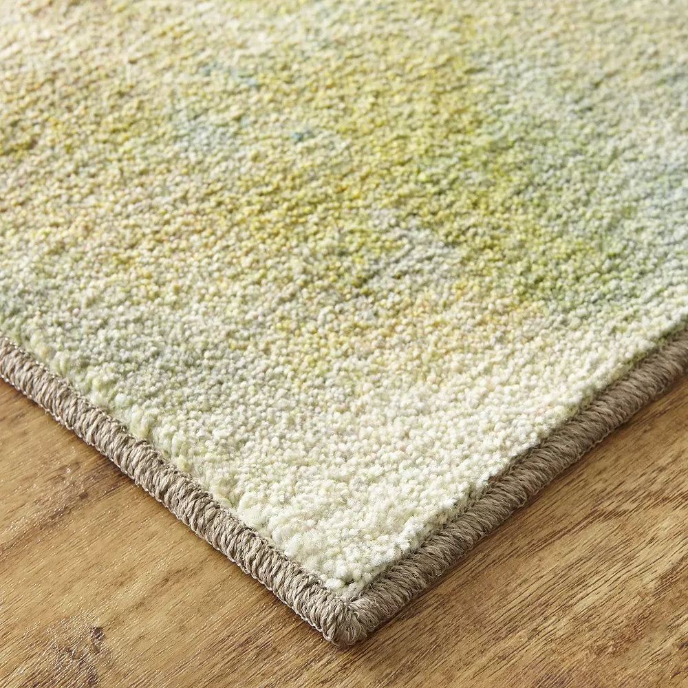 - Overdyed, saturated shades of red, blue, black, green, white, gray, aqua and beige color blend and blur together in the modern painterly inspired style of Mohawk Homes Graphic Canvas Area Rug