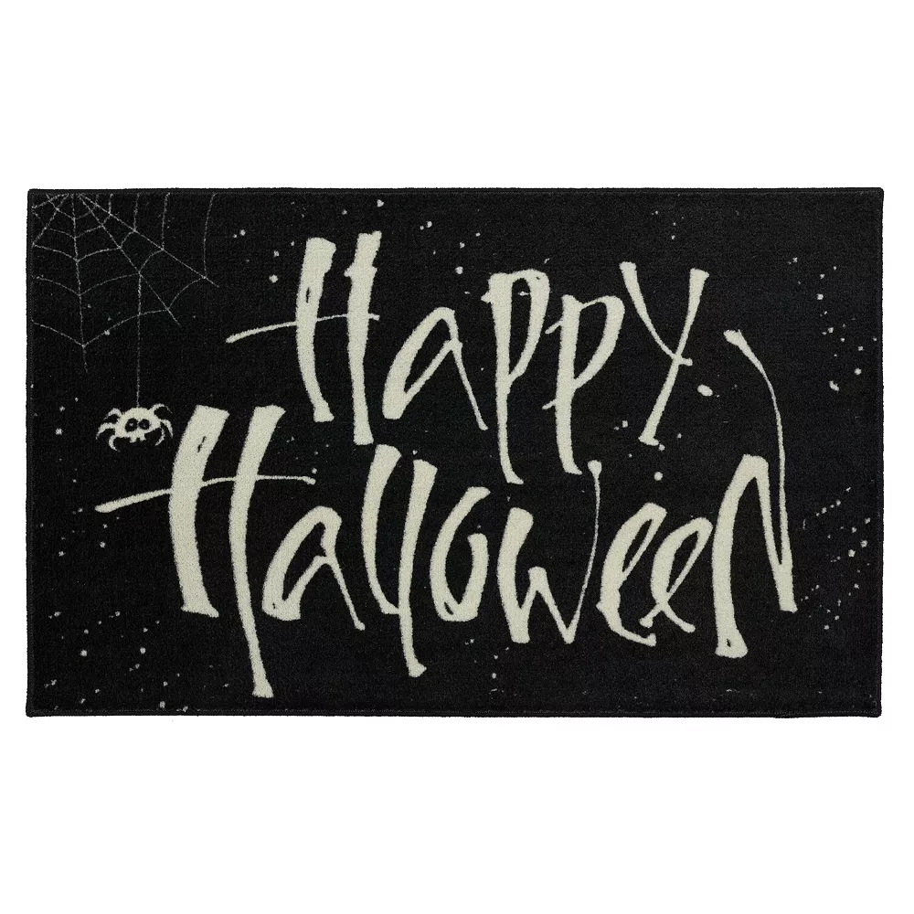 Lend spooky seasonal style to your home’s Halloween decor with this Mohawk Home Prismatic Happy Web rug.
