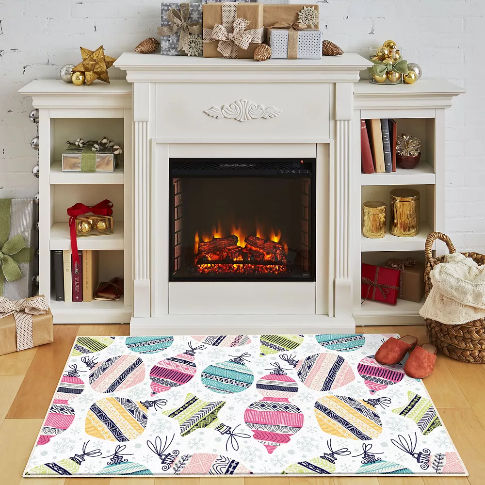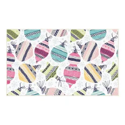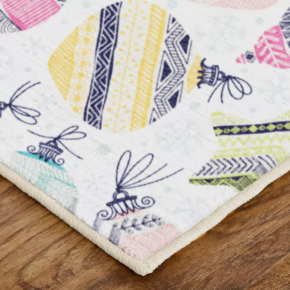 Artisan-inspired illustration makes the ornament pattern from this polyester holiday rug glow in a chic, modern space. Intricate details adorn each shape while delicately drawn snowflakes add intrigue. Features precision dye injected and cut pile construction.