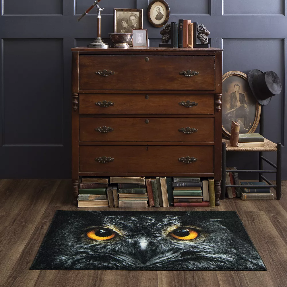 Lend spooky seasonal style to your home’s Halloween decor with this Mohawk Home Prismatic Owl Face rug.