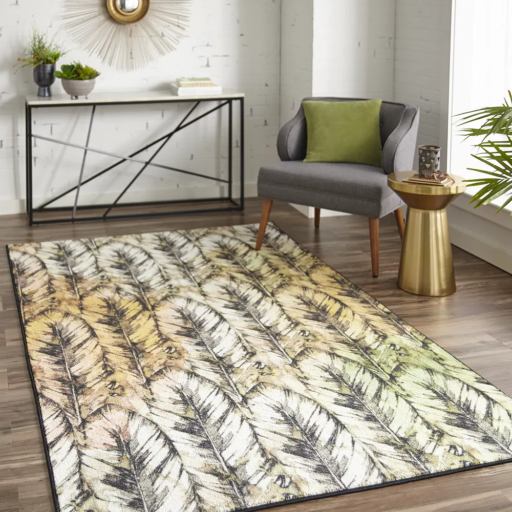 - Modern washes of orange, green, pink and white color meld over the contemporary canvas of Mohawk Homes Painted Feathers Area Rug