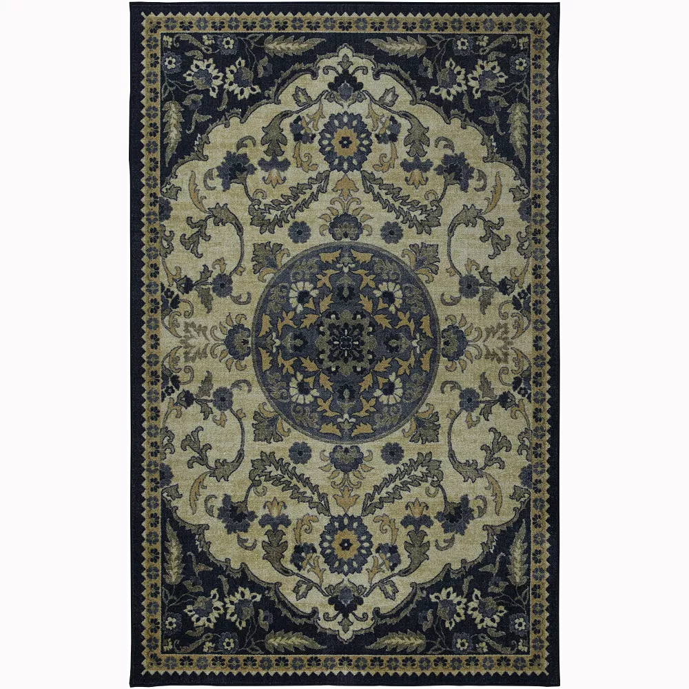 - Elegant, ornately embellished corners and a radiant circular medallion center showcase the detailed craftsmanship of Mohawk Homes timeless and traditional Shanay area rug