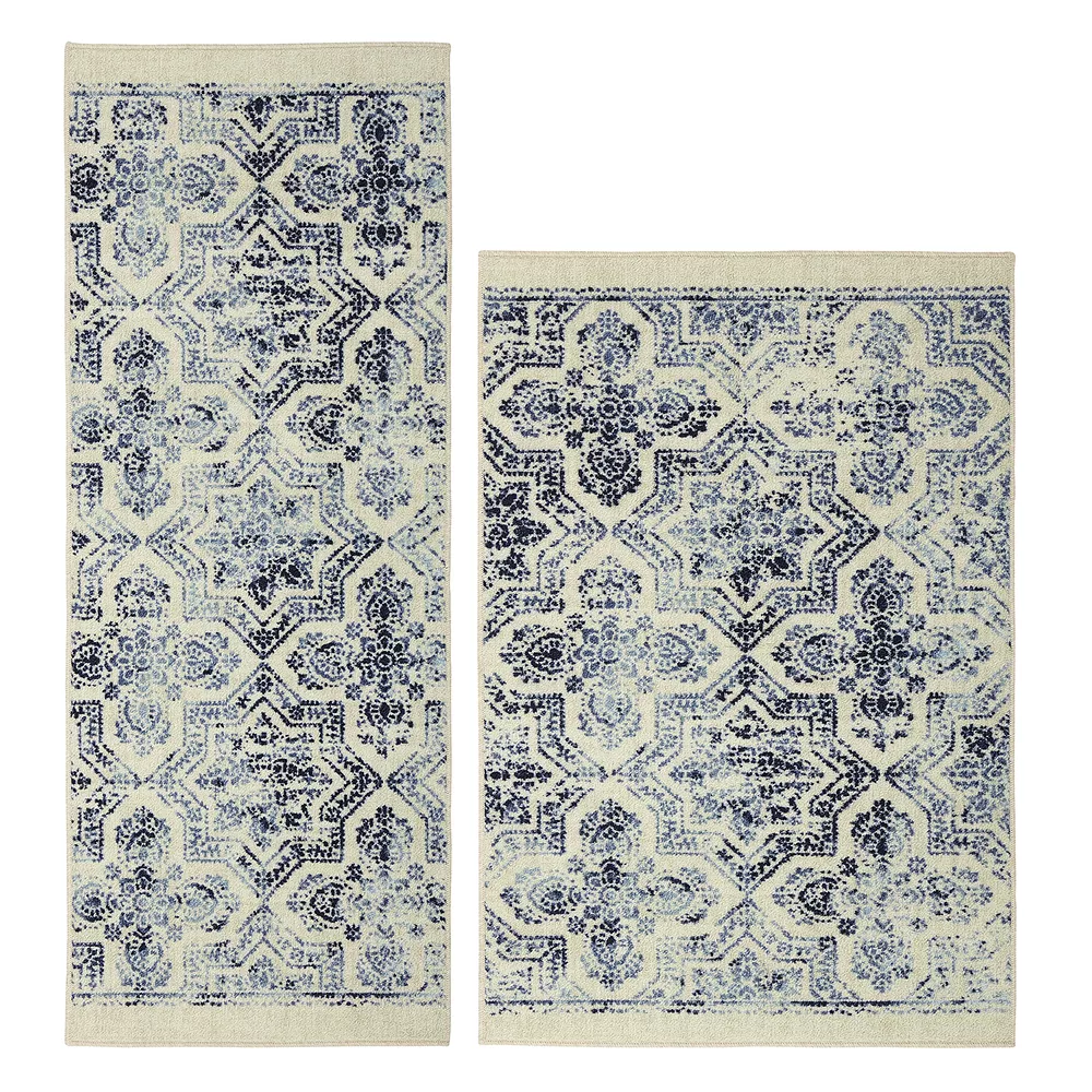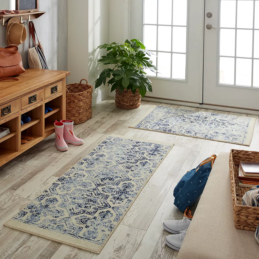 For a serious style statement, look no further than this Mohawk Home SoHo Woodbridge Skylee rug set. In ivory.