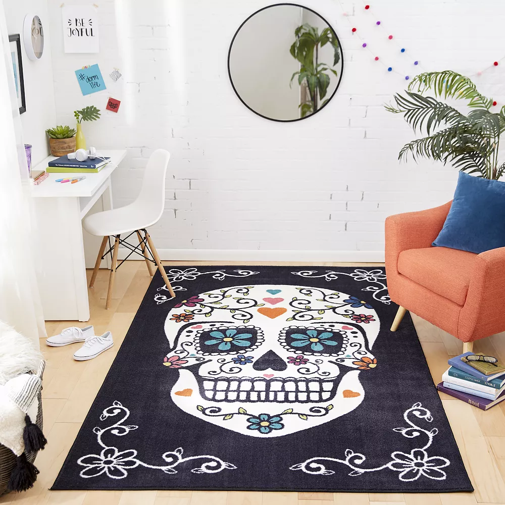 Express your unique sense of style with this Mohawk Home Sugar Skull rug.