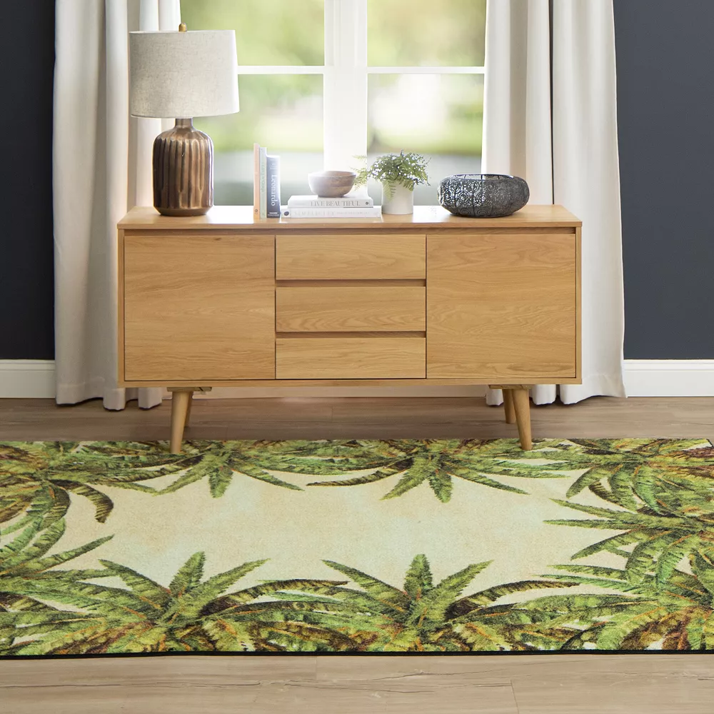 Make your home your own with this magnificent with this Mohawk® Home Verde Palm Border Area Rug.