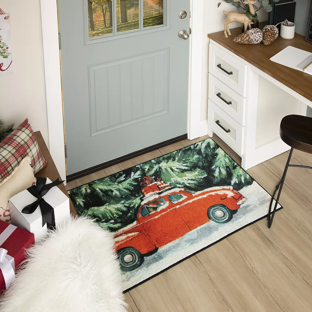Experience the excellence of recycled EverStrand construction in this stylish and seasonal Mohawk Home Vintage Christmas Car rug.