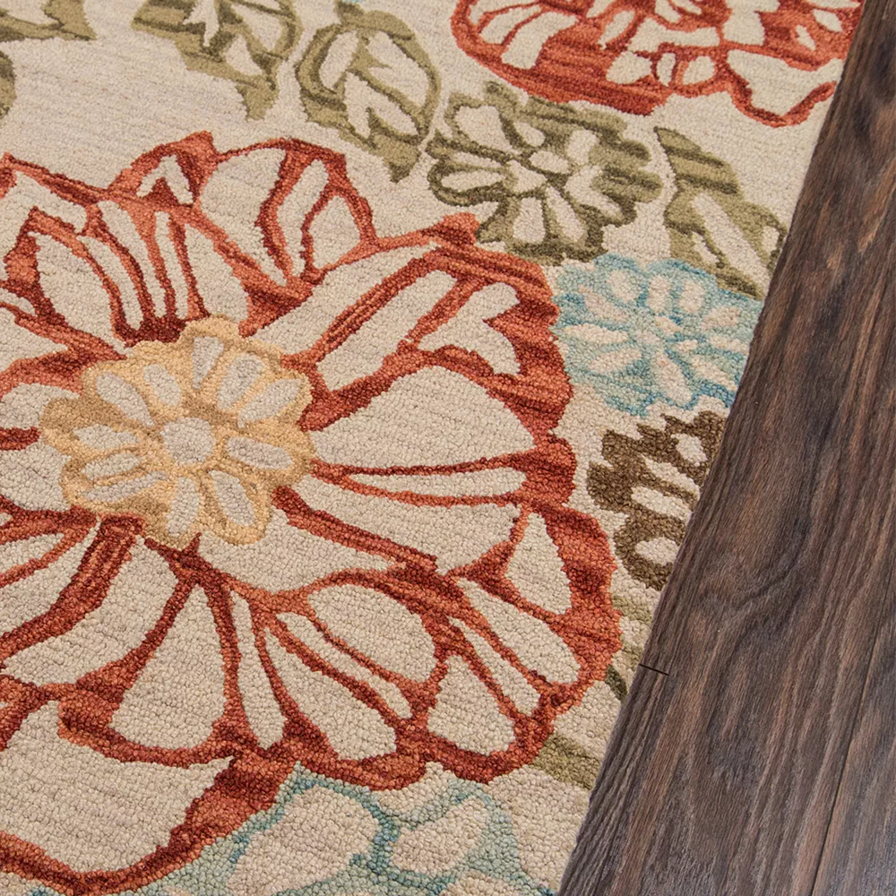 This Momeni Tangier Lucienne Floral Wool rug lends visual interest to any decorating scheme. In beige.