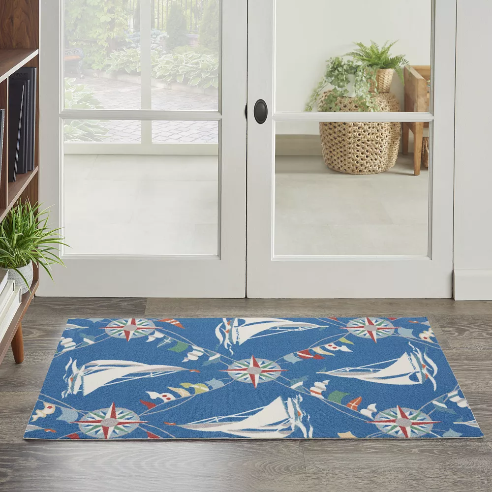 Wake up any living area with this wonderful Waverly Sun N’ Shade Sailing Indoor Outdoor Rug.